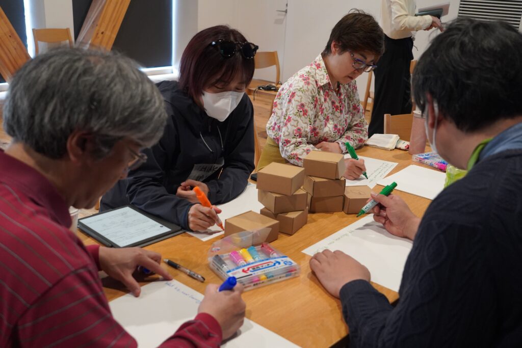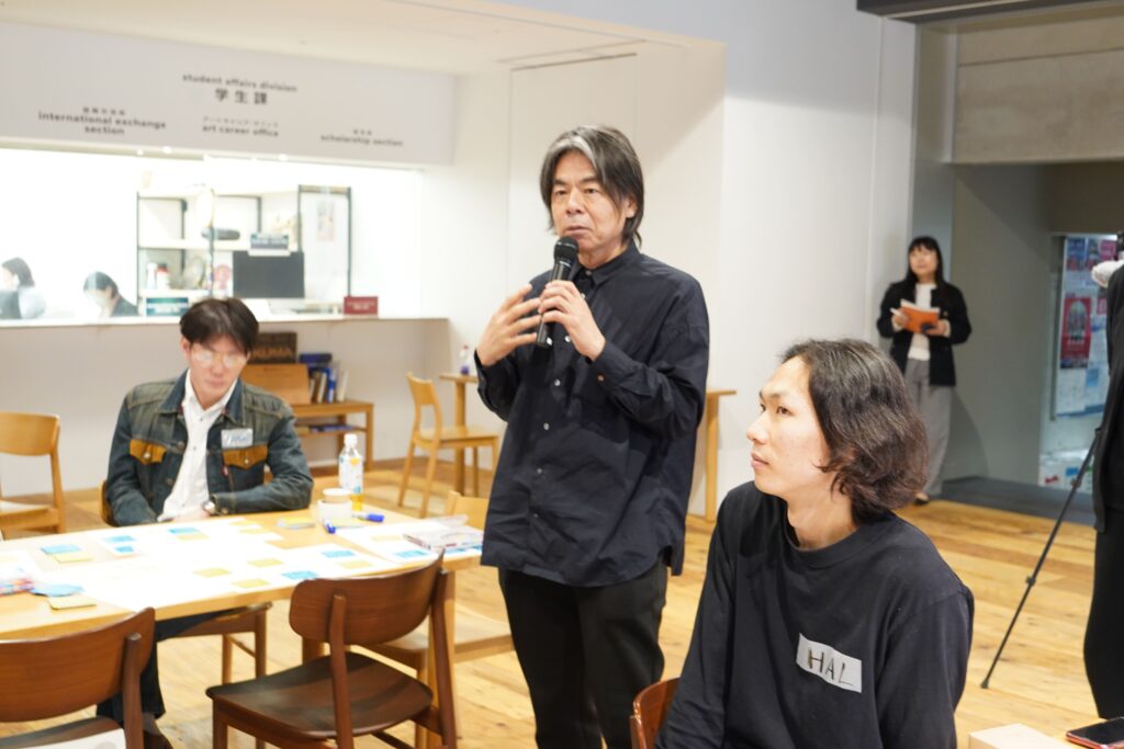 2日間に渡り実施したワークショップでは、対象を全学の学生と教員に分けて行い、学部や専攻を横断して美術教育のあり方を考えた。2日目のワークショップではロンドン芸術大学の学生にオンラインで参加してもらったり、日比野学長にも途中参加してもらうなど、それぞれ異なる立場から幅広い議論をすることができた。