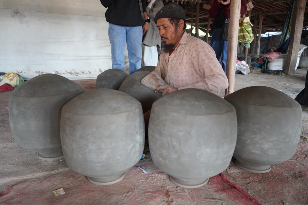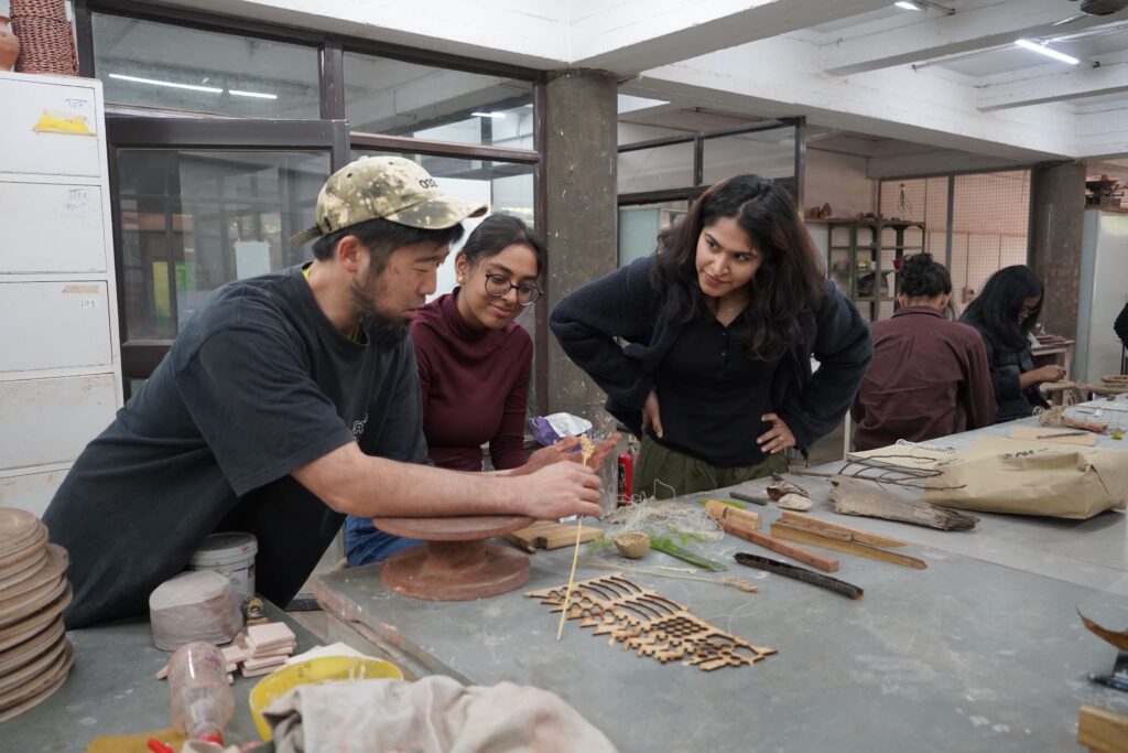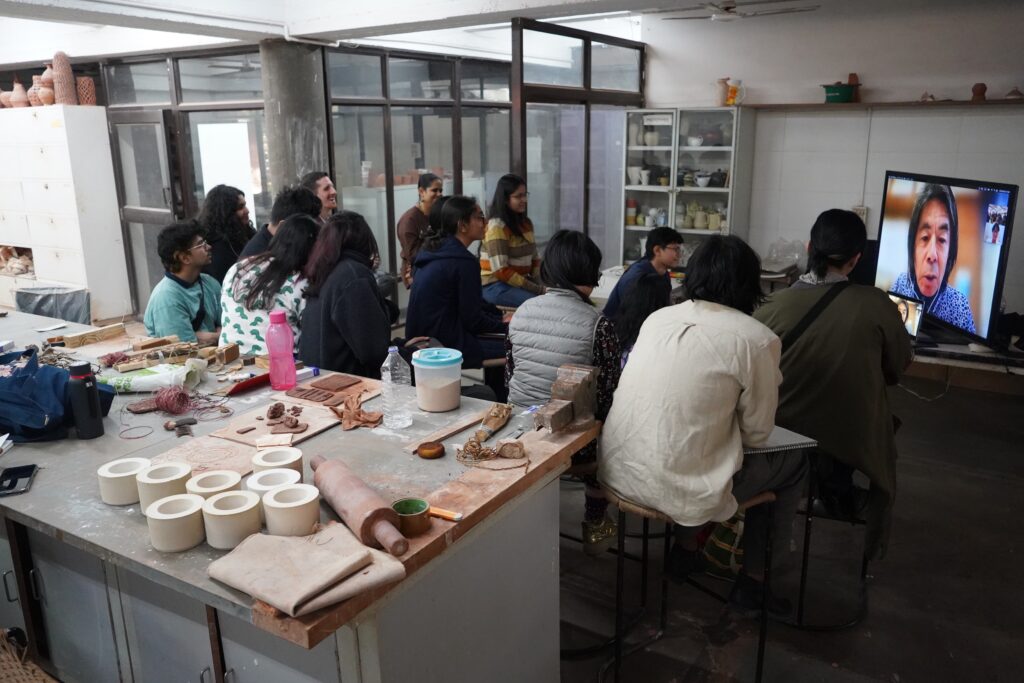 授業では、素材としての土と、ものづくりに欠かせない道具の関係にも注目が置かれました。土は触れた痕跡を正確に記録し、時間や記憶を留める媒体であり、一方で道具は素材や環境、使用者に応じて柔軟に適応する必要があります。学生たちは、こうした「触れること」や「つくること」がもつ社会的・心理的な意味を、体験を通して理解していきました。