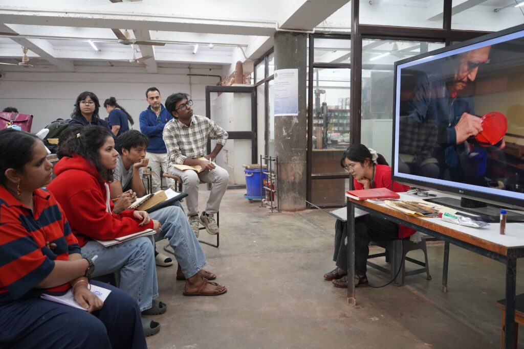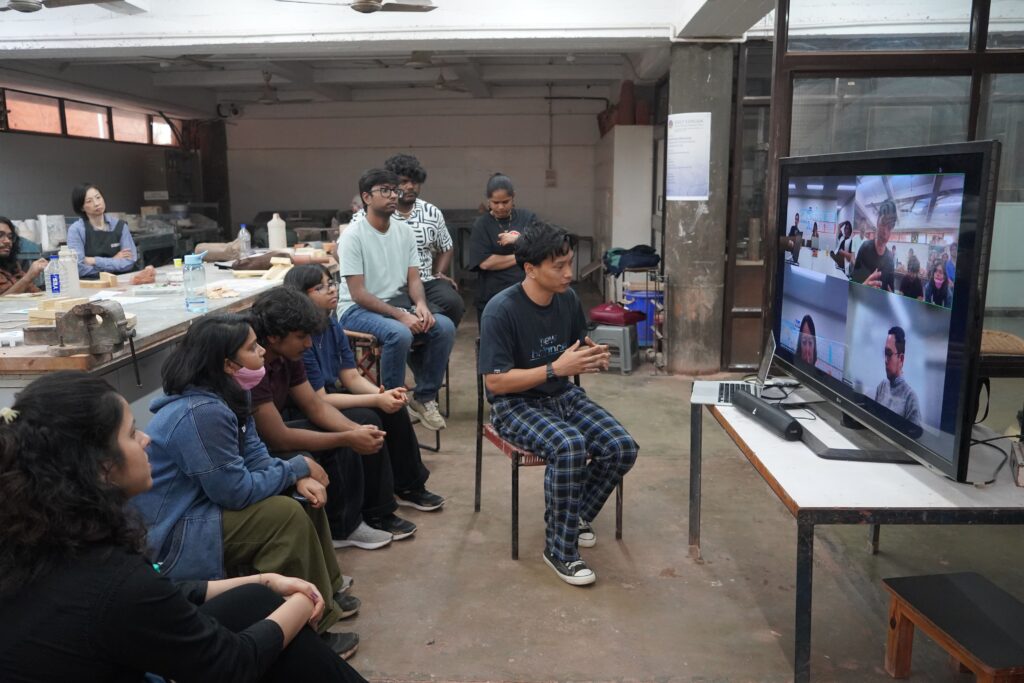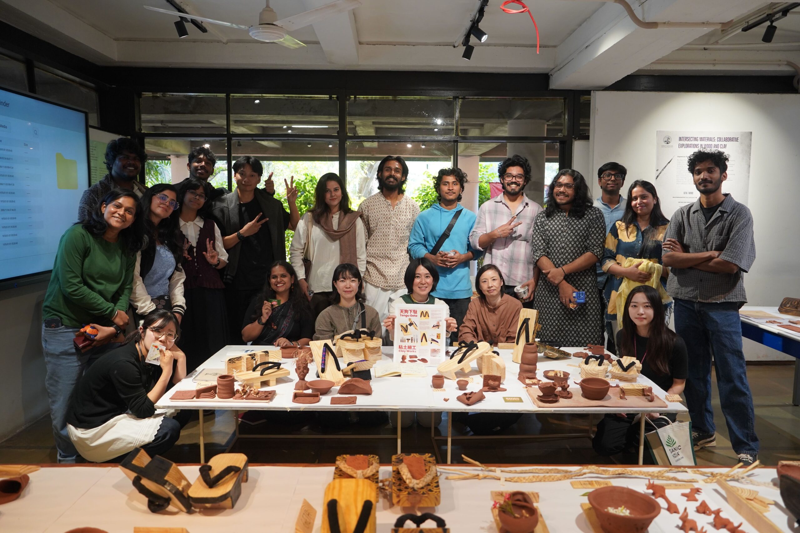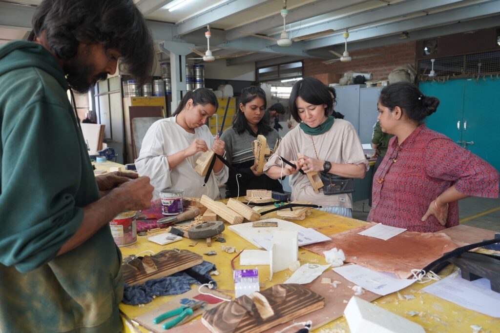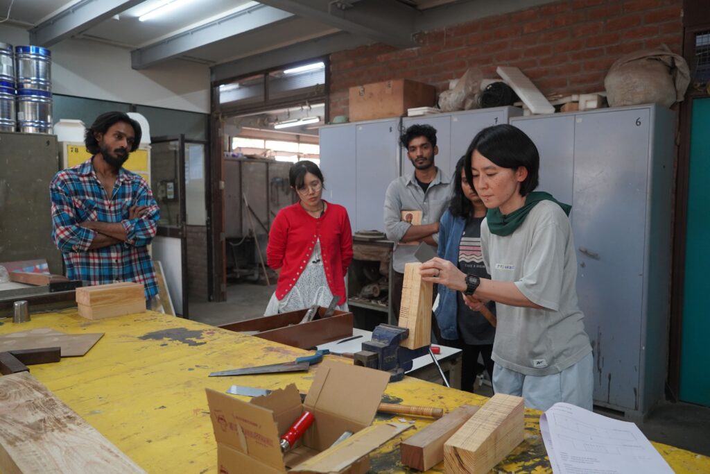 NID(National Institute of Design, Ahmedabad)で開催されたInternational Open Electiveにて「土と木を横断する:工芸の実験」を実施しました。毎年全世界に対して授業を公募するOEは今回指名制で実施者を選定し、今年のテーマを「“SHILP SANGAM” 伝統に根ざし、未来を形作る」とし、インド全土、およびアジア諸国より工芸職人たちが20名弱集い、それぞれの技術を学生たちに伝授する2週間のモジュール授業が行われました。本学からは木工と陶芸を専門とする教員2名と、運営・通訳サポートの教員1名を派遣し授業を実施し、NIDの14名の学生と本学の修士2名の学生、合計16名が参加しました。