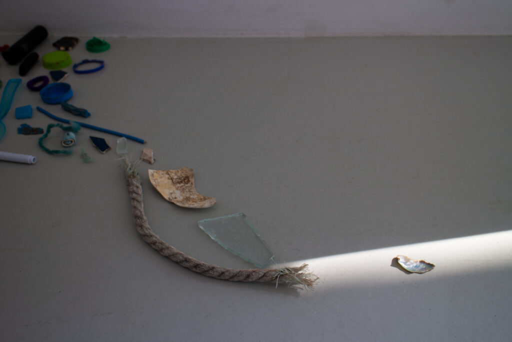 私はアテネ近郊の都市エレウシスに焦点を当て、現地の海岸リサーチと制作に取り組みました。エレウシスはかつて「エレウシスの秘儀」が行われた神聖な地でしたが、現在では工場が立ち並ぶ重工業地帯へと変貌し、浜辺には放置された船が溜まり、プラスチックごみが散乱していました。現地のチューターは、「ギリシャでは一時的なものほど永く残る」と語っていました。日本のような温暖湿潤気候とは異なり、ギリシャは乾燥しているため、遺跡などが残りやすいのだろうと私も感じていました。そして、だからこそ永遠を志向する哲学という学問が生まれたのだろうと思いました。そこから、わずか一瞬で使い捨てられるごみが、海では“永遠”に近い時間スケールで存在し続けるという事実に、深い示唆を得ました。