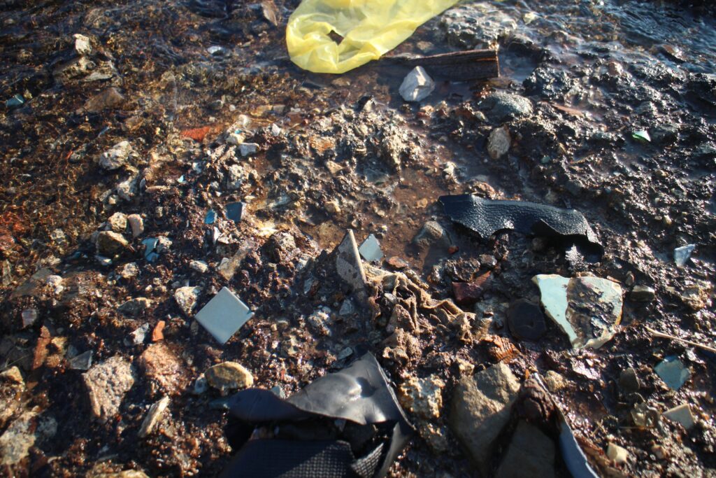 私はアテネ近郊の都市エレウシスに焦点を当て、現地の海岸リサーチと制作に取り組みました。エレウシスはかつて「エレウシスの秘儀」が行われた神聖な地でしたが、現在では工場が立ち並ぶ重工業地帯へと変貌し、浜辺には放置された船が溜まり、プラスチックごみが散乱していました。現地のチューターは、「ギリシャでは一時的なものほど永く残る」と語っていました。日本のような温暖湿潤気候とは異なり、ギリシャは乾燥しているため、遺跡などが残りやすいのだろうと私も感じていました。そして、だからこそ永遠を志向する哲学という学問が生まれたのだろうと思いました。そこから、わずか一瞬で使い捨てられるごみが、海では“永遠”に近い時間スケールで存在し続けるという事実に、深い示唆を得ました。
