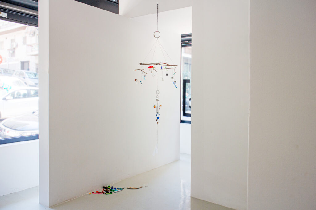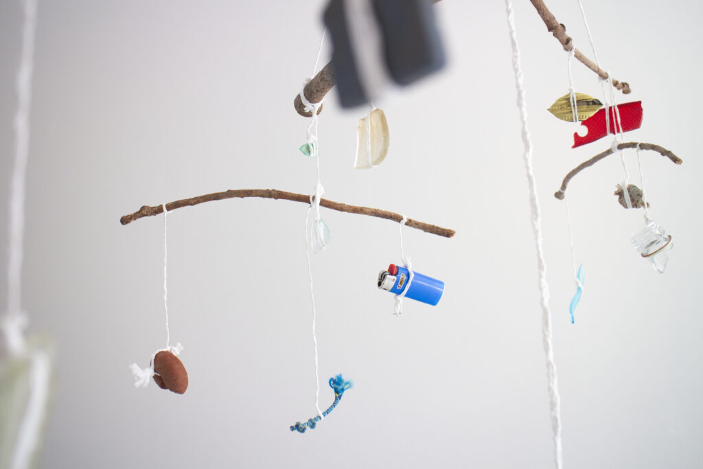 日本でも以前から浜辺でのごみ拾いを続けてきましたが、それを作品へどのように昇華させるかは、ずっと模索していました。今回、現地のエコロジー系ワークショップで「レジ袋を紐にする技法」を学び、そこから「ごみを編んで吊るす」という制作方法の核を得て、自分の中にあった問題意識と表現方法が一致しました。こうして、流木、漁網、ロープなどの廃材を用いたインスタレーション作品《永遠と一日(Eternity and a Day)》を完成させ、最終展示にて発表しました。